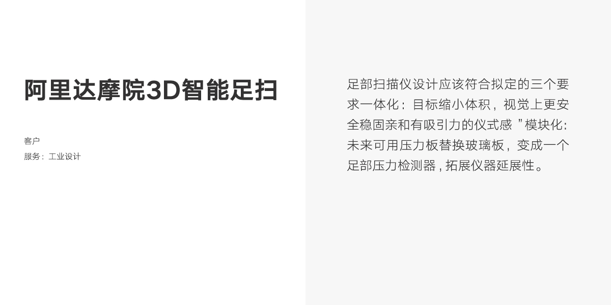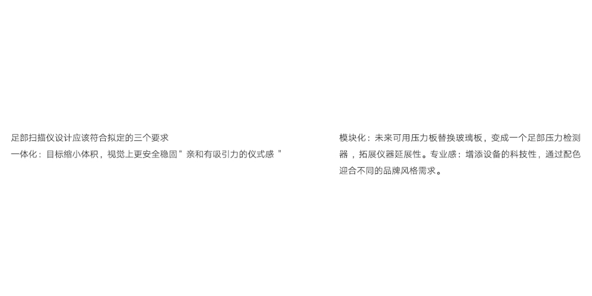 模塊化:未來可用壓力板替換玻璃板,變成一個足部壓力檢測器,拓展儀器延展性。專業(yè)感:增添設(shè)備的科技性,通過配色迎合不同的品牌風(fēng)格需求。